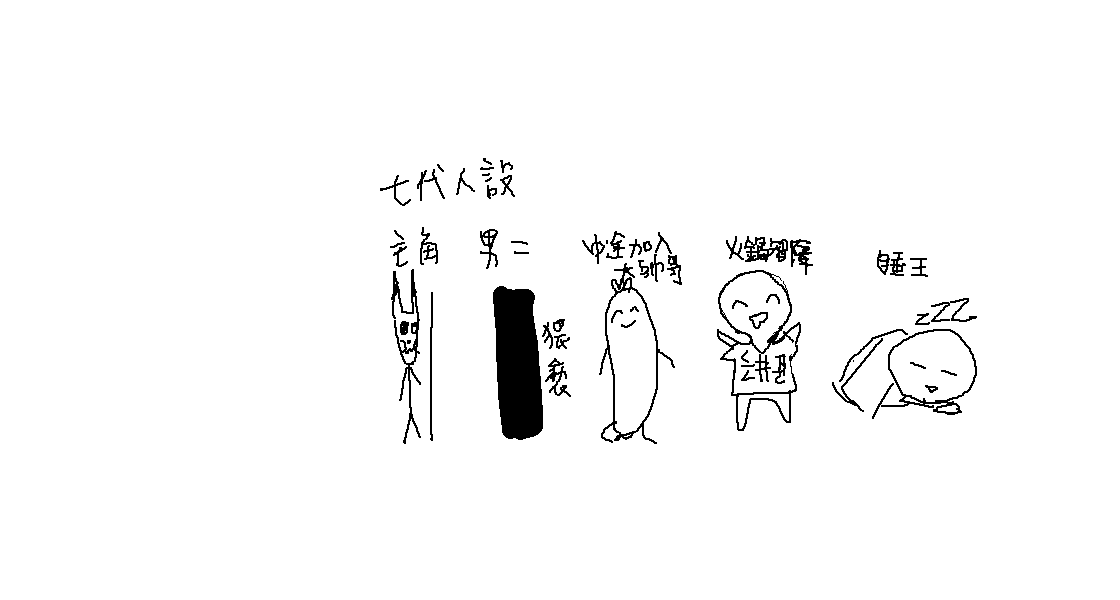 主角衣GAY王:中途加入/闇冷護目鏡托馬:睡王/他K嚕:智障/啦啦隊捏弟:主角